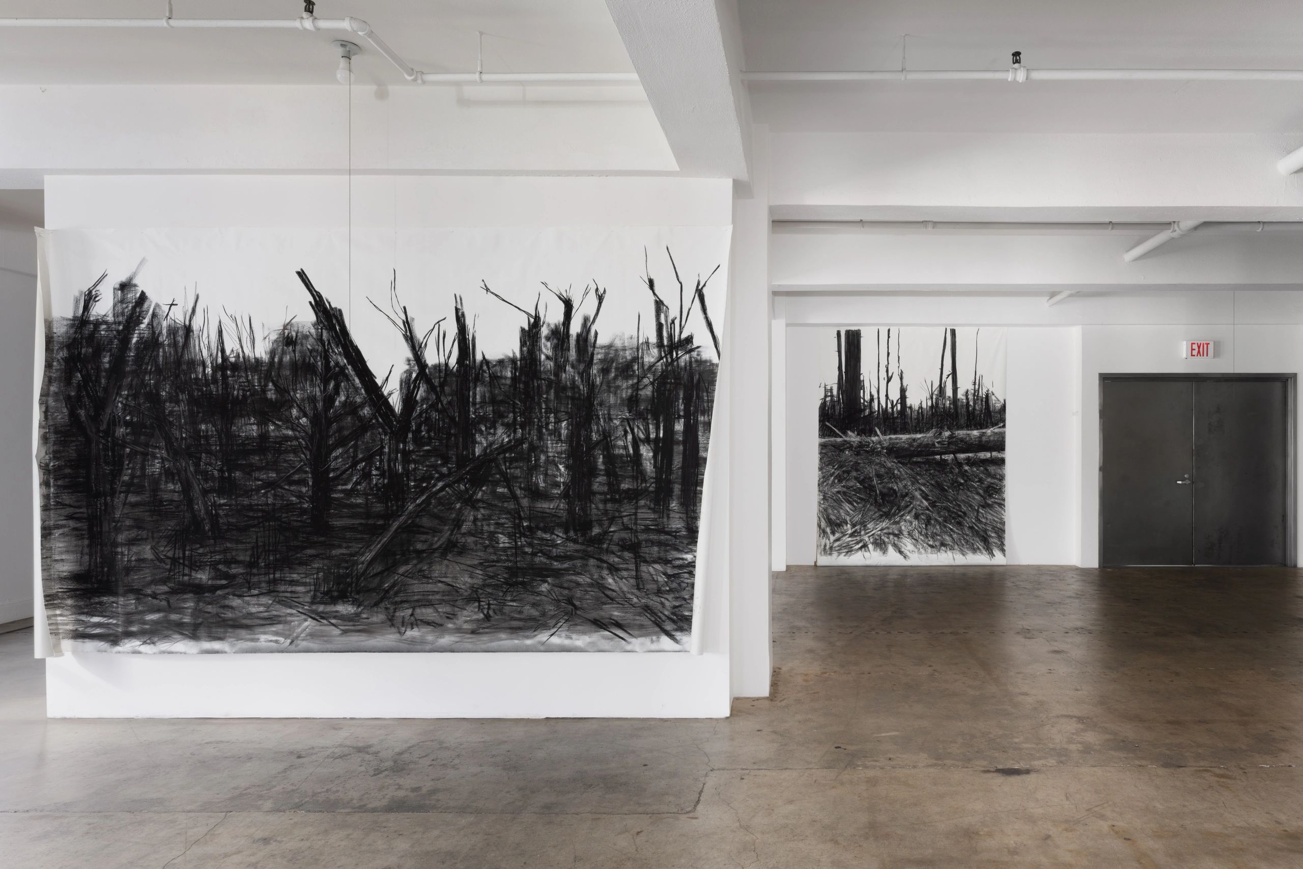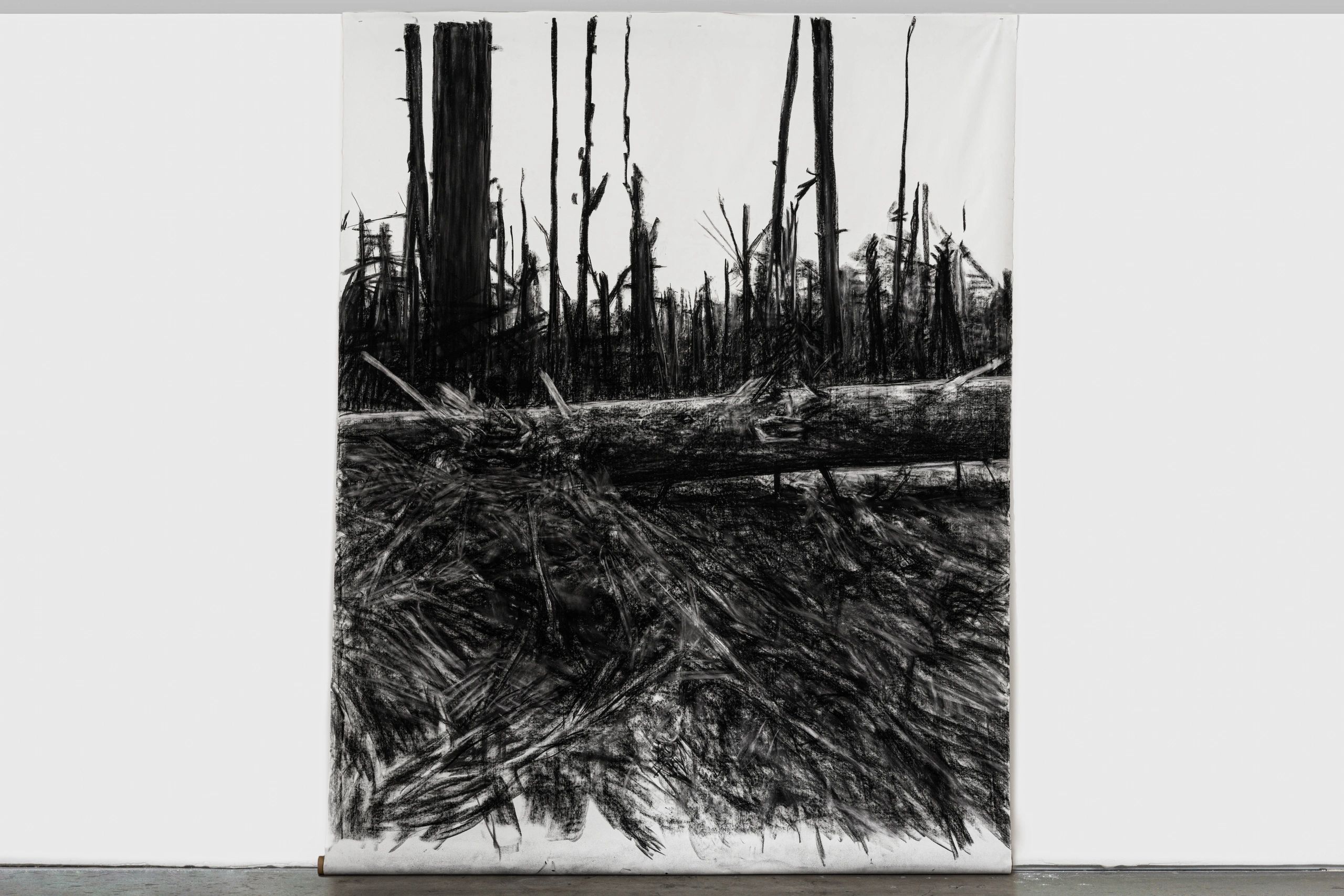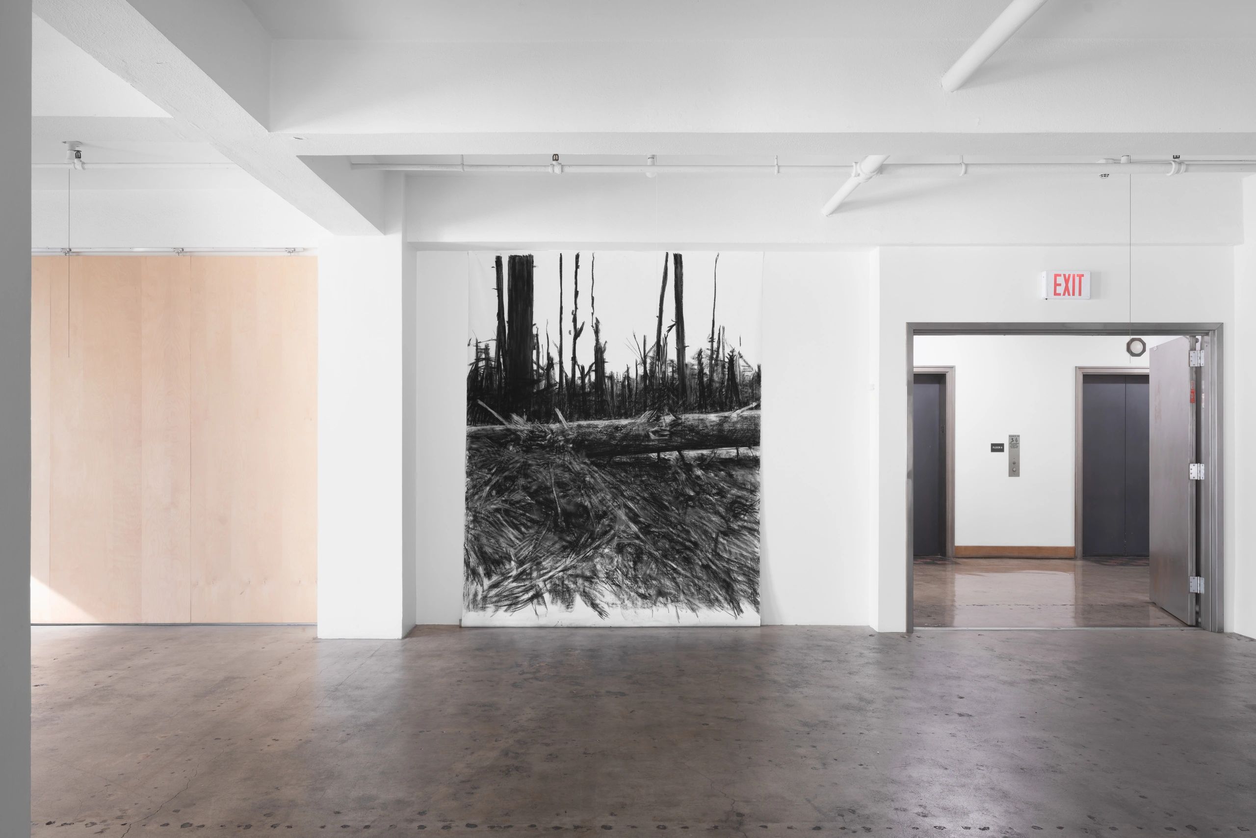 Biodiversity habitat conservation and advocating for environmental protections are central in Mellin’s artistic practice and activism. As the natural environment that the artist often finds herself in is ephemeral, decaying, and malleable, Conservation Imperatives will undo the standard perception that an exhibition is unchanging throughout its duration. In preparation for the show, Mellin shifted the discursive space of the gallery into a studio, and the large works were made there. The content of the works will show the transitional physical condition that terrestrial landscapes are in, as they face anthropogenic conversion and destruction. The materials used, such as the artwork’s frames, are sourced from recycling sites.