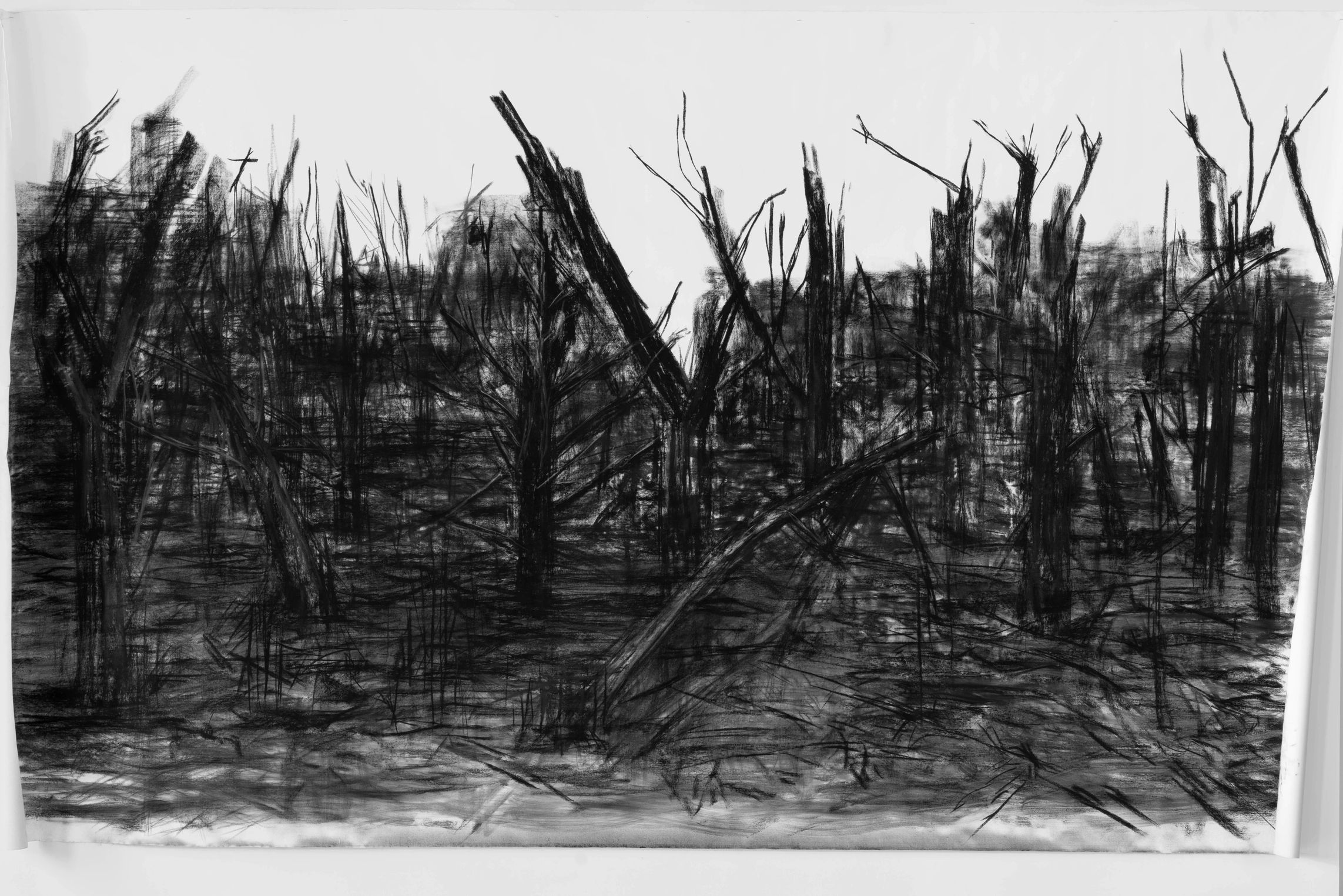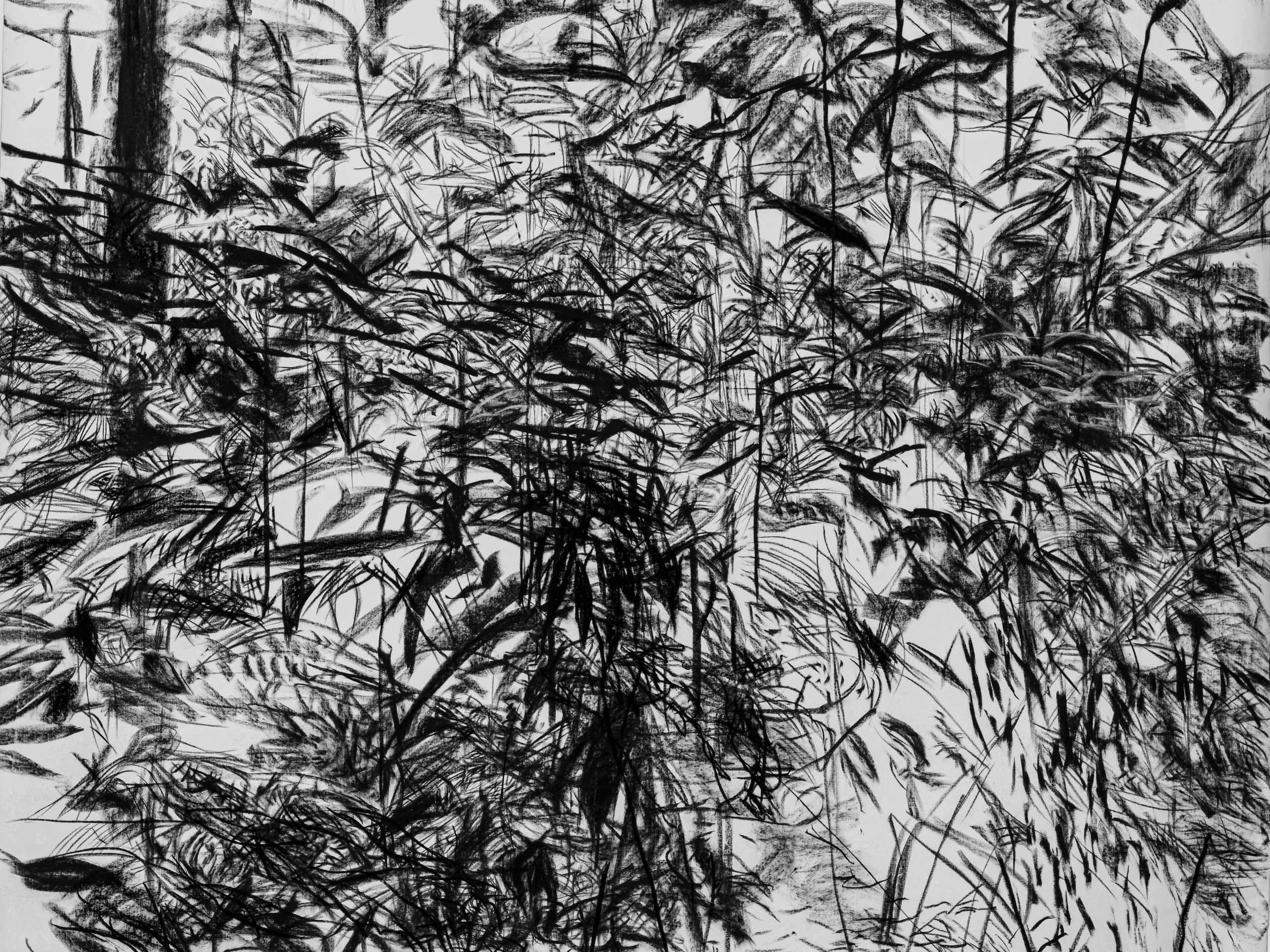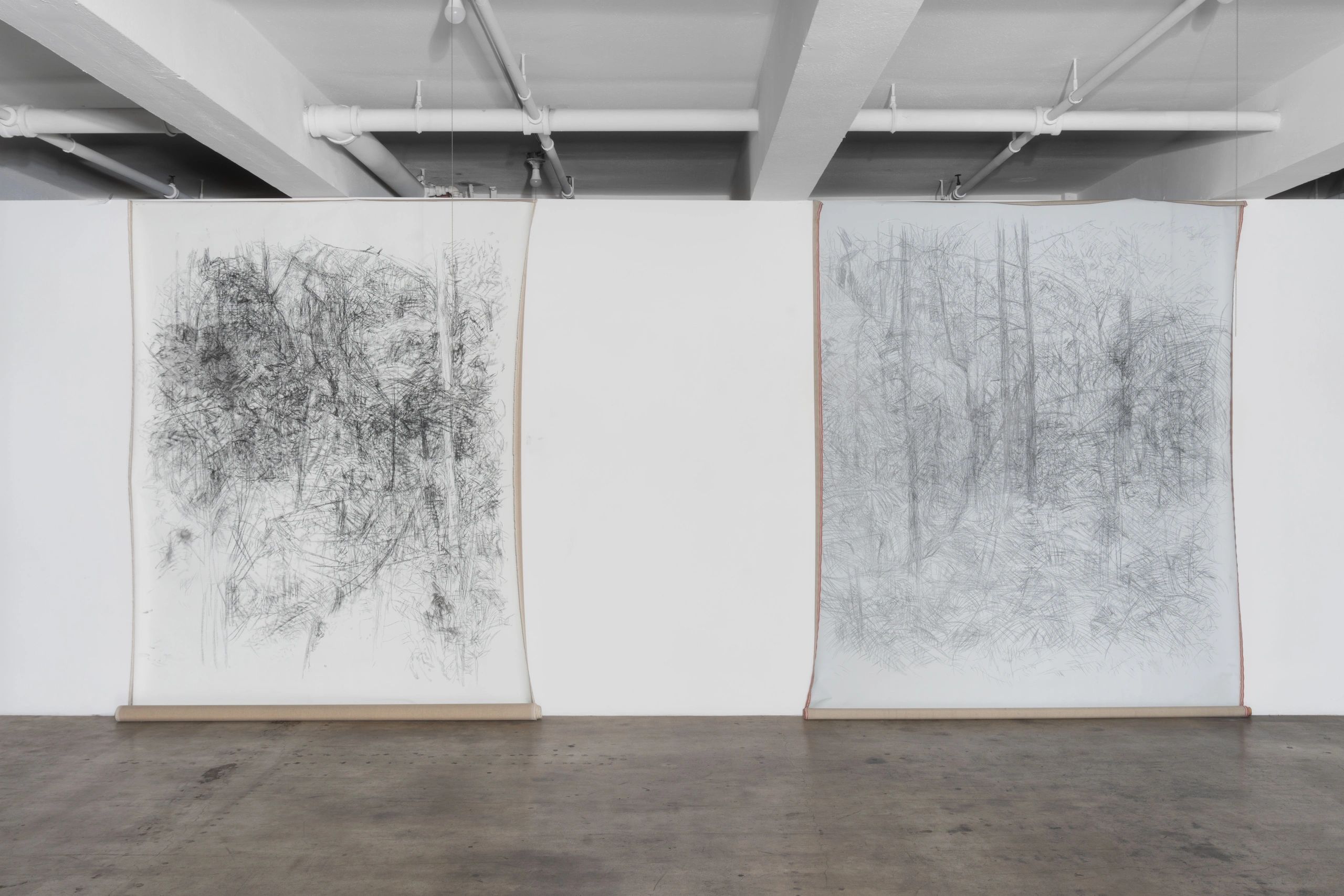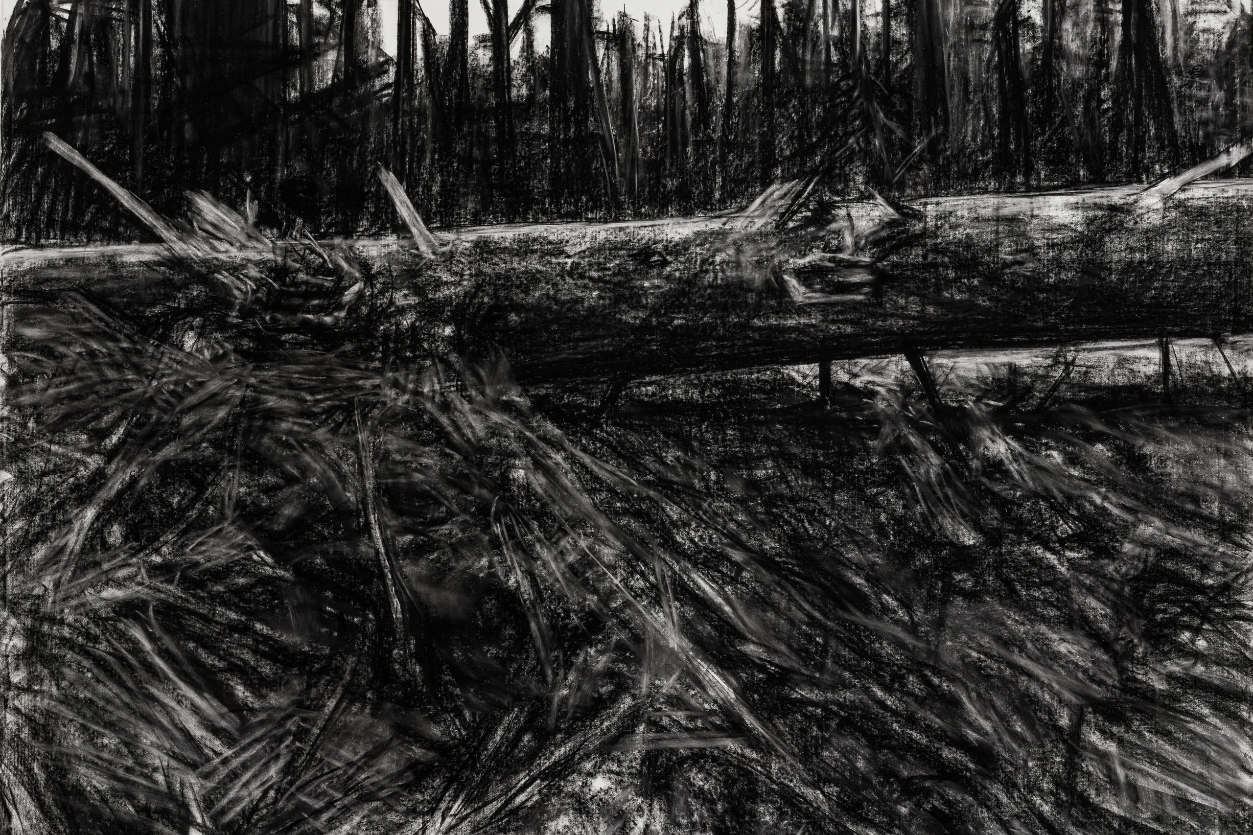 Biodiversity habitat conservation and advocating for environmental protections are central in Mellin’s artistic practice and activism. As the natural environment that the artist often finds herself in is ephemeral, decaying, and malleable, Conservation Imperatives will undo the standard perception that an exhibition is unchanging throughout its duration. In preparation for the show, Mellin shifted the discursive space of the gallery into a studio, and the large works were made there. The content of the works will show the transitional physical condition that terrestrial landscapes are in, as they face anthropogenic conversion and destruction. The materials used, such as the artwork’s frames, are sourced from recycling sites.