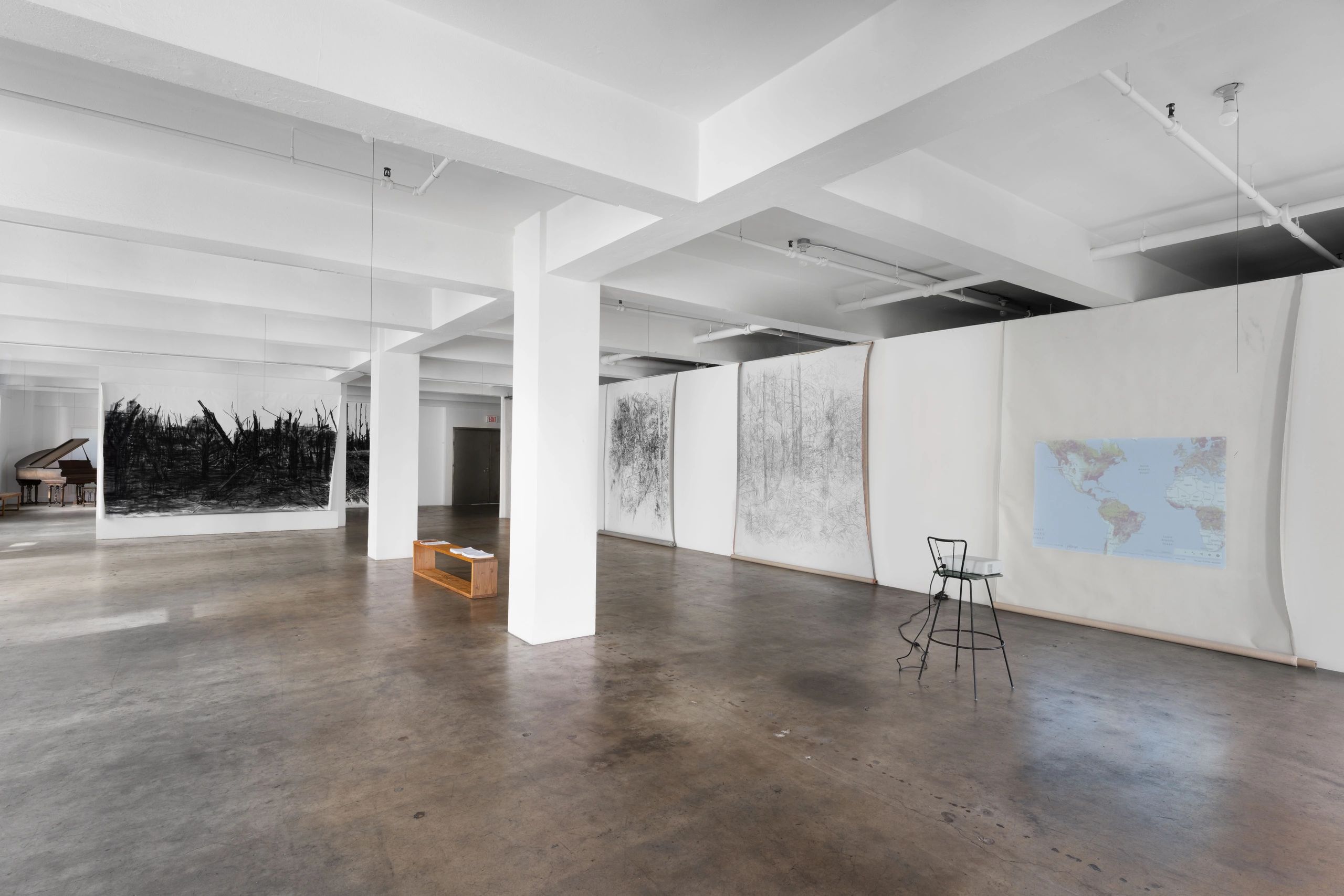 Giovanni’s Room is pleased to present Conservation Imperatives, an installation by Haley Mellin, from November 12 – extended through January 20, 2024. This is the artist’s first solo exhibition in Los Angeles and will consist of large-form wall drawings, paintings, and texts on the natural world and habitats. The exhibition’s title is abbreviated from Conservation Imperatives: Securing the Last Unprotected Terrestrial Sites Harboring Irreplaceable Biodiversity, a forthcoming paper that the artist co-authored and is set to be published in Frontiers, a community-run and open-access journal. Stacks of papers by Indigenous leaders and conservation biologists will also be available for viewers to take home.