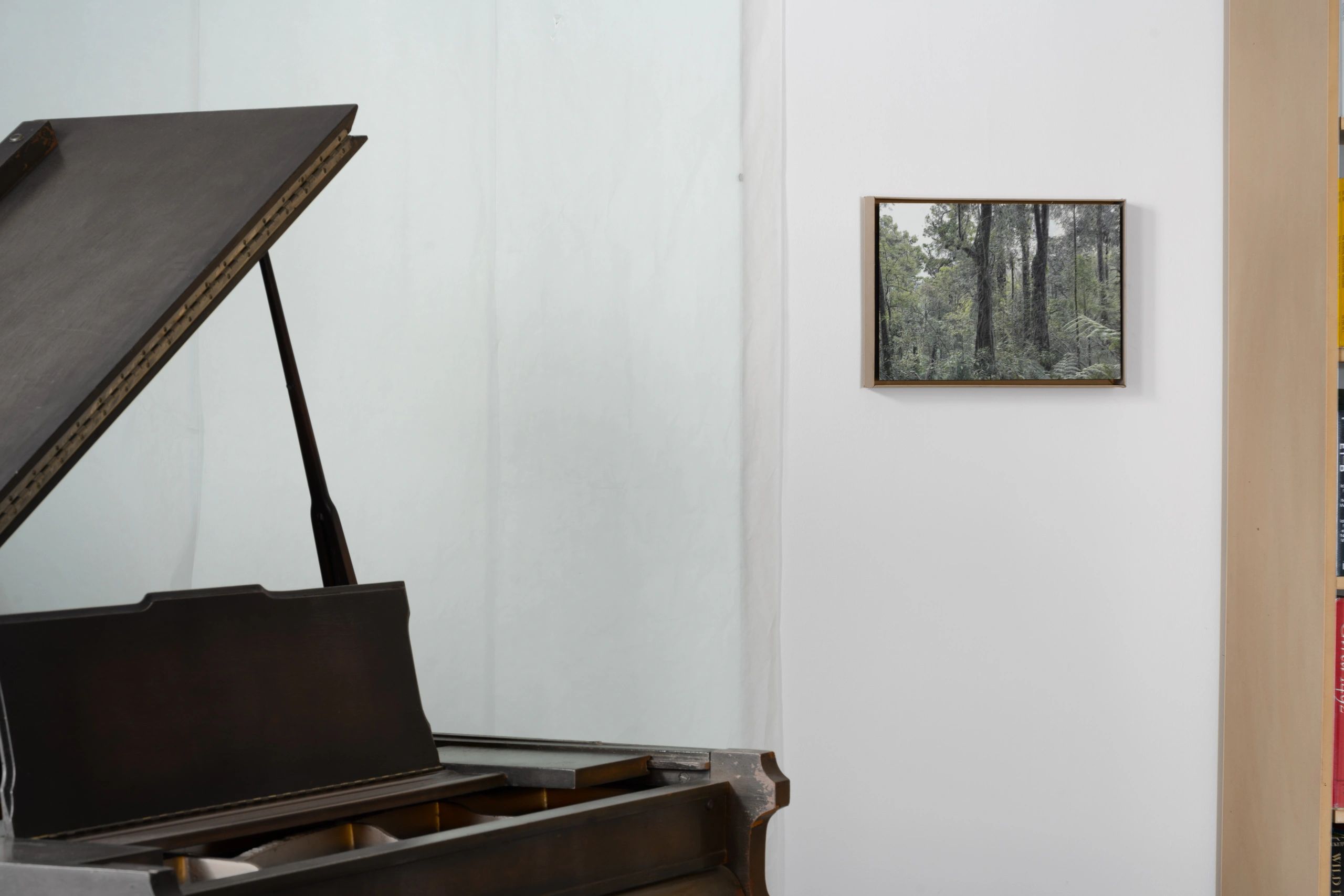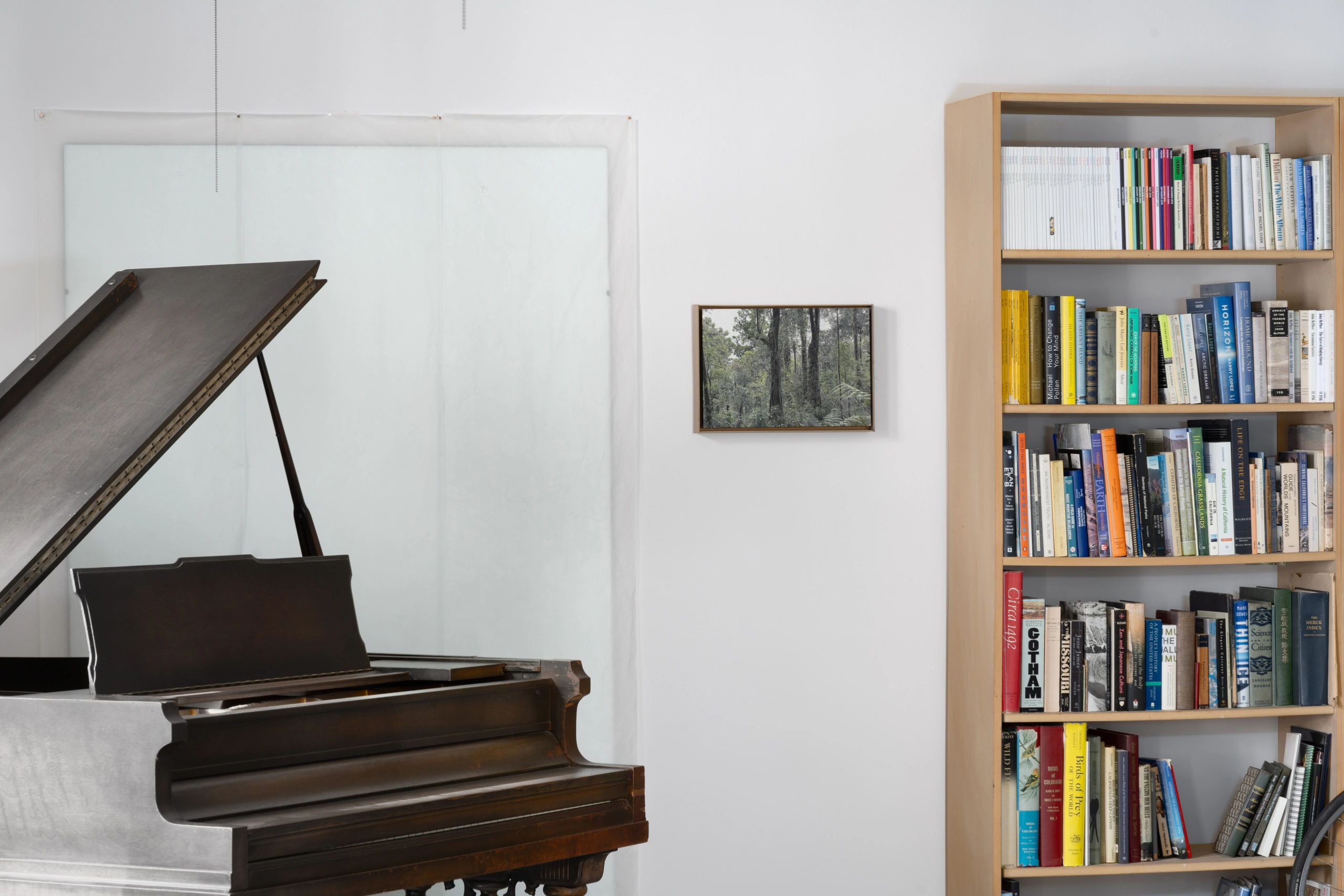 The exhibition will involve periodic performances on the resident piano in the gallery. Los Angeles musician Jay Israelson will perform during the opening reception. The instrument, an antique baby grand piano dating to the 1890’s, is courtesy of Lindon Schultz, the architect of the gallery space. The inclusion of music and performance in the show emphasizes not only the relationship between the viewer and the object, but among participants in a communal space. The playing of music shifts the norm, as the experience of viewing art is often a relatively quiet one. No environment is a static space with completed objects – can the gallery itself not be fluid, as nature so often is?